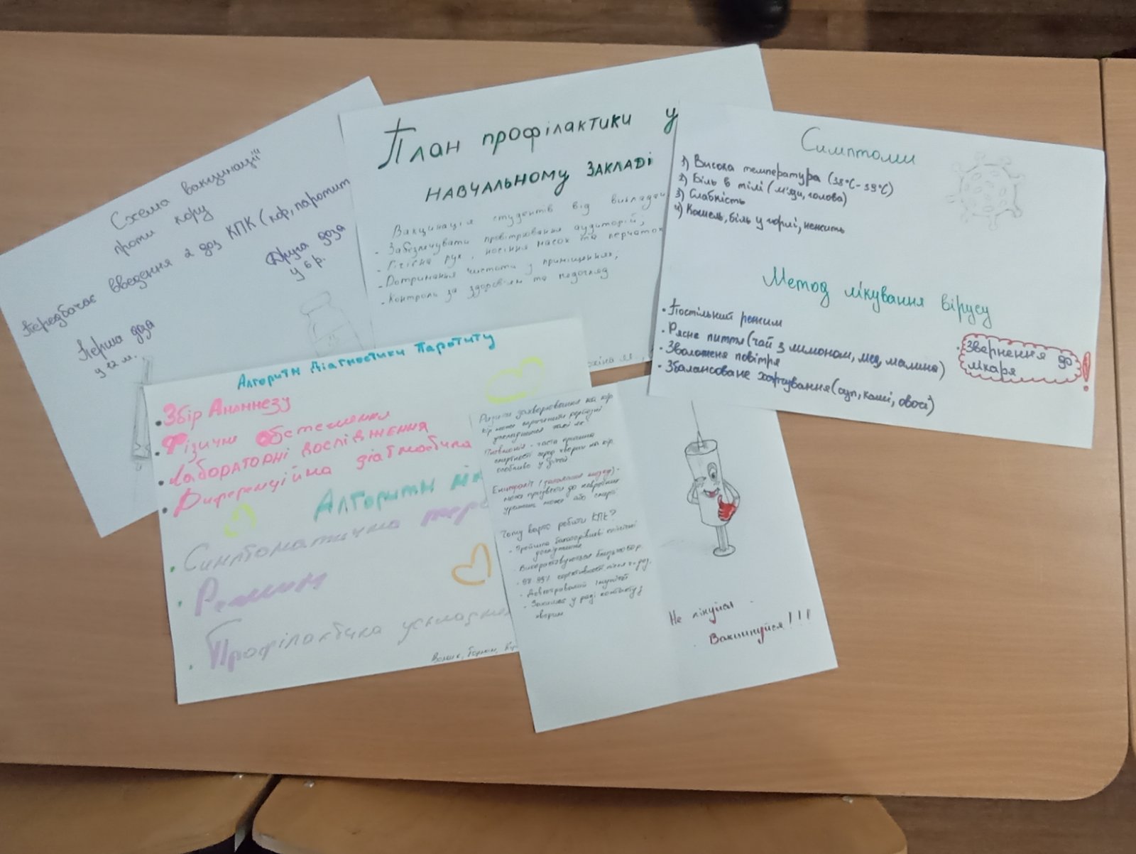 Під час заняття використовувалися різні методи активного навчання: «мозковий штурм», робота в групах, евристичний, проблемний та дослідницький методи, що сприяло глибшому засвоєнню матеріалу. Також студенти долучилися до розробки інформаційних брошур для населення, у яких висвітлили важливі аспекти профілактики вірусних інфекцій.