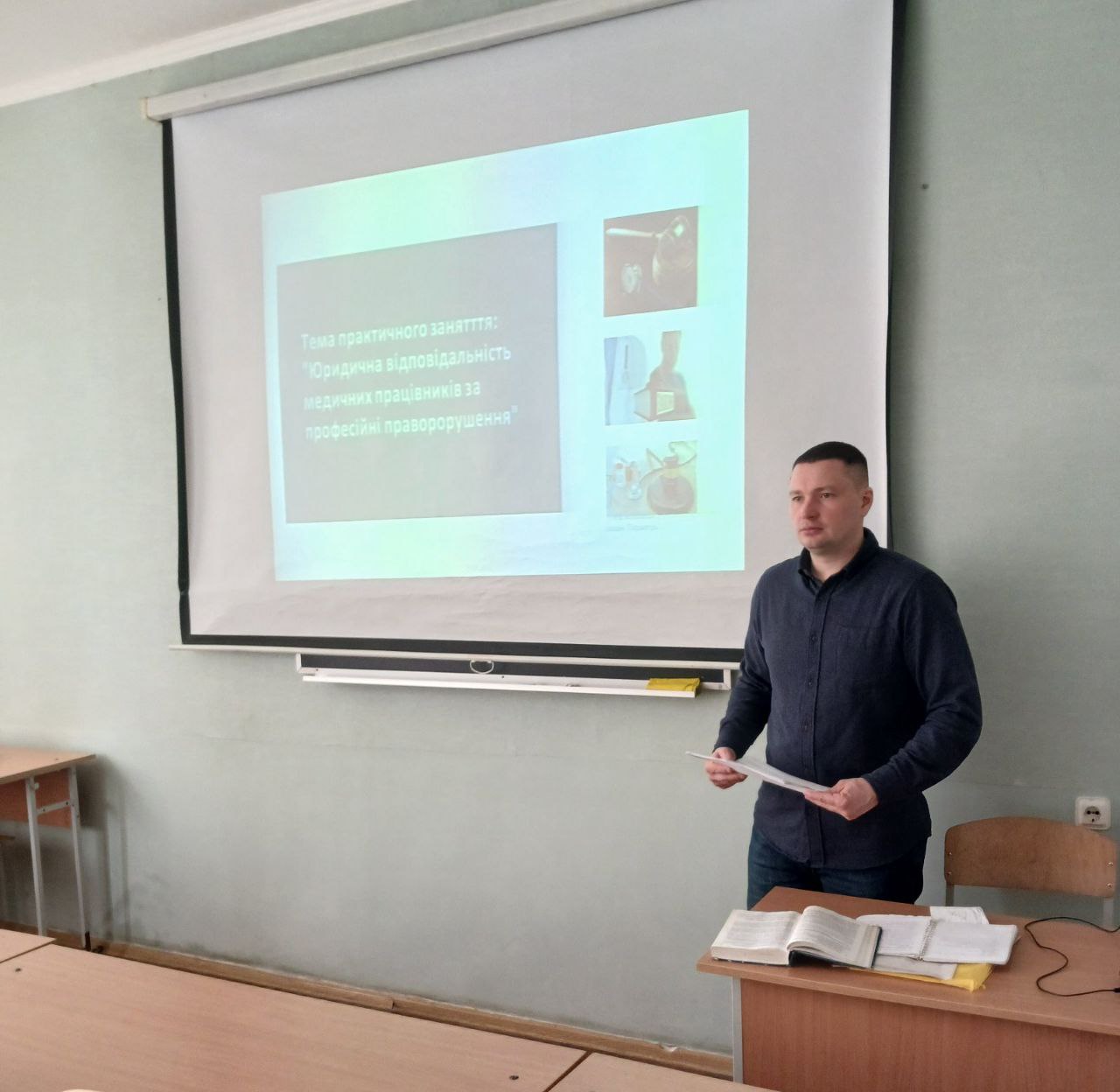 «Юридична відповідальність медичних працівників за професійні правопорушення» – такою була тема відкритого заняття для здобувачів освіти ОПП Сестринська справа, проведеного викладачем медичного права Олегом Білановим.