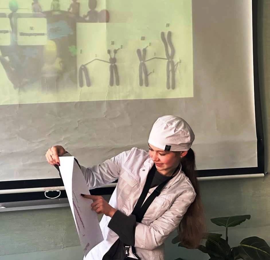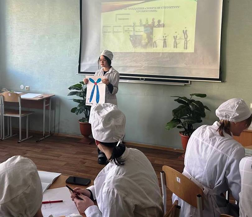 5 лютого 2025 року викладач Оксана Воробйова провела відкрите заняття з дисципліни «Біологія і екологія» за темою «Каріотип людини. Хромосомний аналіз» для студентів першого курсу ОПП Стоматологія ортопедична.