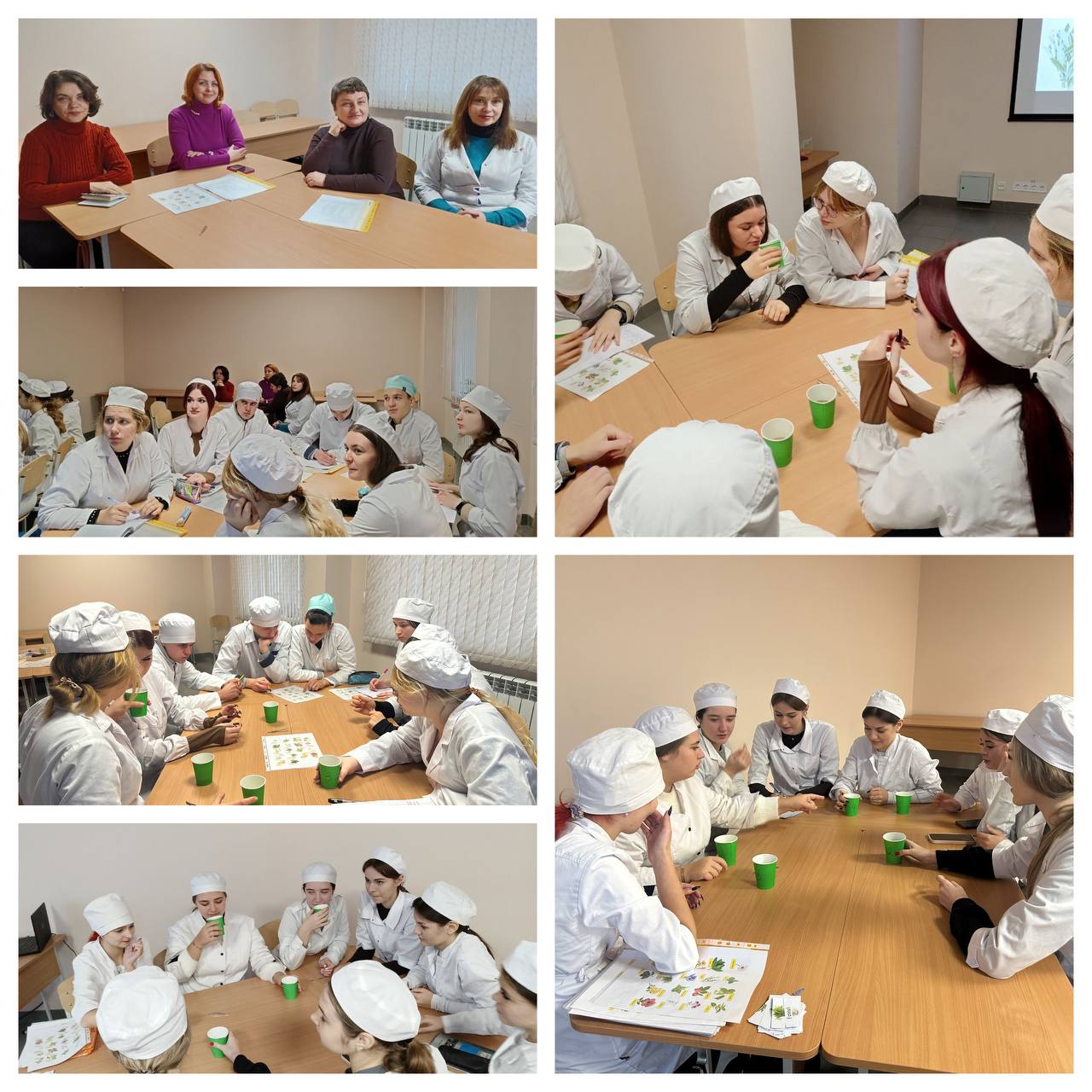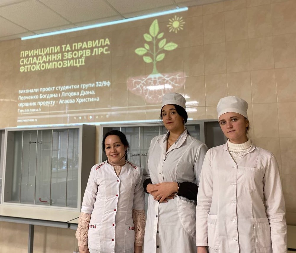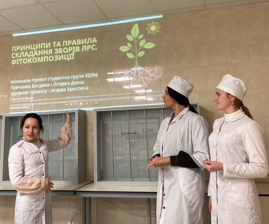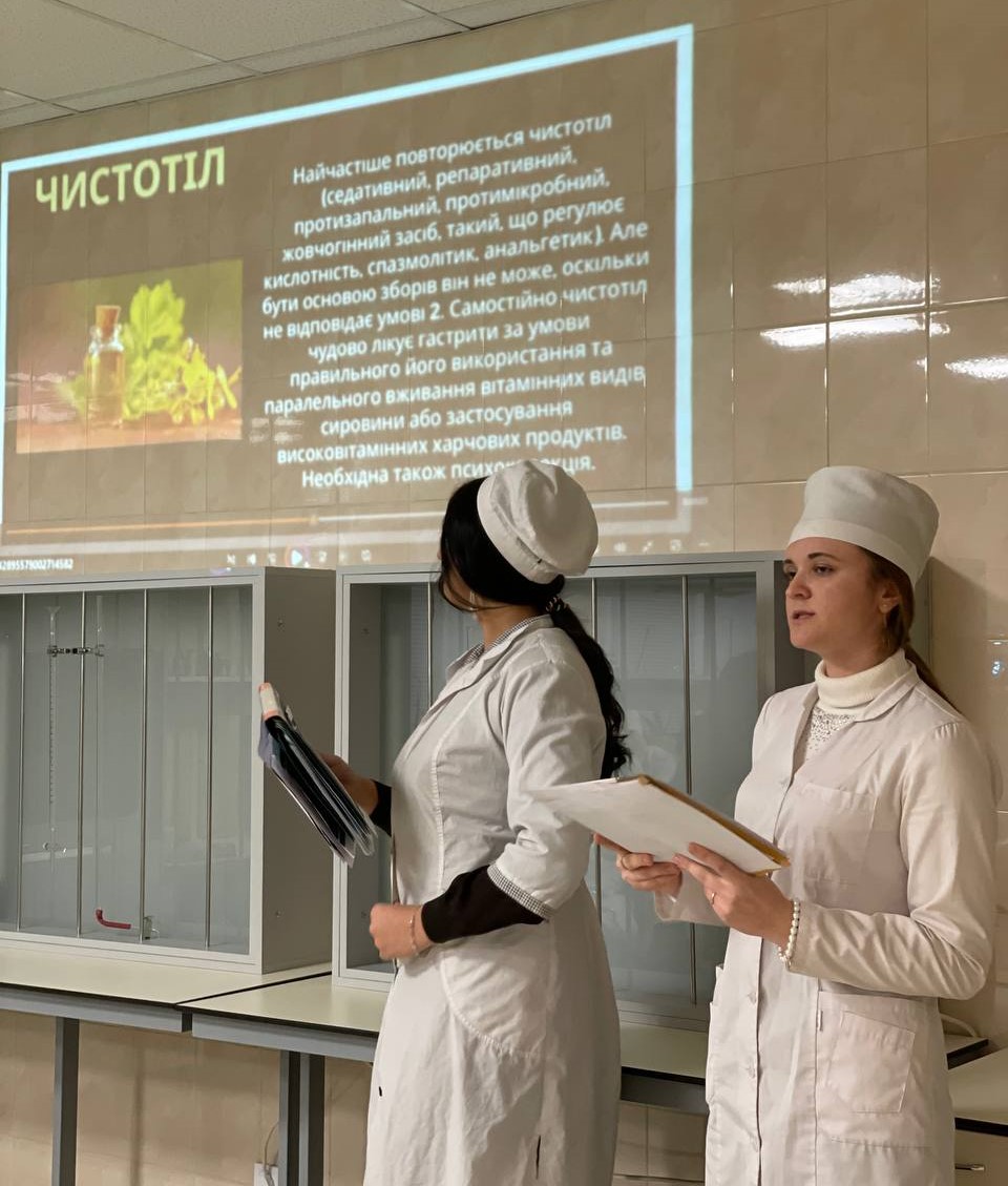 З доповіддю виступили здобувачі освіти ІІІ курсу ОПП Фармація Левченко Богдана і Літовка Діана, які презентували результати роботи над індивідуальною темою «Принципи та правила складання зборів ЛРС. Фітокомпозиції». Доповідачки висвітлили принципи технології приготування зборів, особливості взаємодії хімічного складу рослин, ознайомили присутніх з властивостями лікувальних фітокомпонентів.