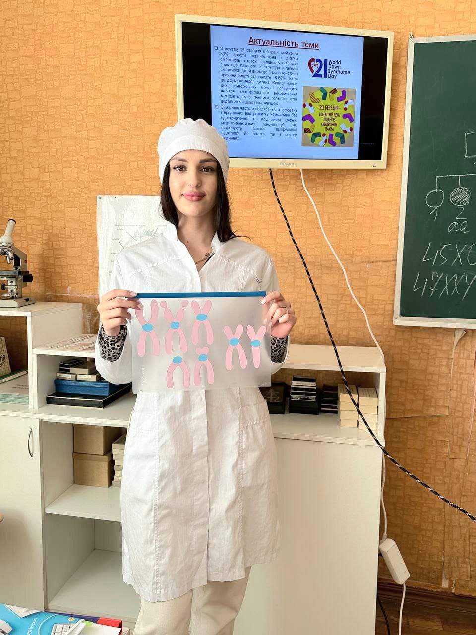 У межах навчальної дисципліни «Основи медичної біології з генетикою» для здобувачів освіти 1 курсу ОПП Сестринська справа викладачем-методистом Білановою Л.П., було проведено відкрите практичне заняття на тему «Методи дослідження спадковості людини», що є особливо актуальним напередодні відзначення Всесвітнього дня людей із синдромом Дауна (World Down Syndrome Day). У ході заняття студенти розкрили суть різних методів, які застосовують для діагностики спадкової патології, зокрема значення цитогенетики – основного методу діагностики синдрому Дауна.