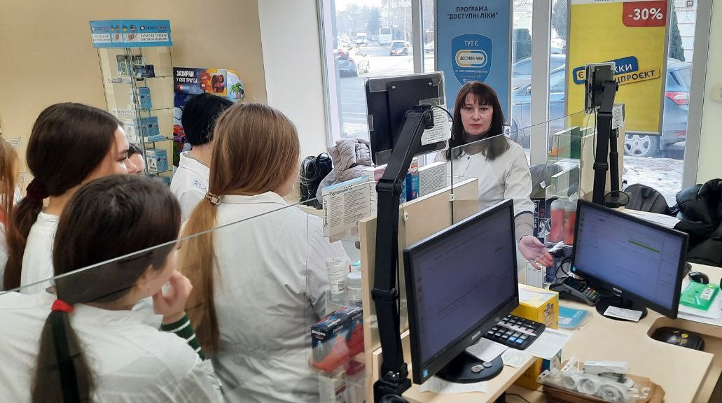 Для здобувачів освіти ОПП Фармація в межах робочої навчальної програми з дисципліни «Вступ до фаху» проведено практичне заняття на базі аптеки ТОВ «СВ МЕДІКАЛ». Фахівці аптеки розповіли про основні функції, які виконує аптека як заклад охорони здоров'я, засоби та методи забезпечення санітарно-протиепідемічного режиму та організацію фармацевтичної інформації. Особливу зацікавленість у здобувачів освіти викликала інформація про порядок та застосування елементів фармацевтичної опіки при безрецептурному відпуску лікарських засобів.