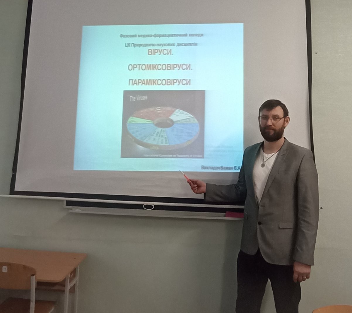 У січні 2025 року викладач Євгеній Бажан провів відкрите практичне заняття з дисципліни «Основи мікробіології» для здобувачів освіти ОПП «Сестринська справа» за темою «Віруси». Тема є надзвичайно важливою, адже вірусні інфекції відіграють значну роль у сучасній медицині та потребують ефективних методів діагностики, профілактики і лікування.