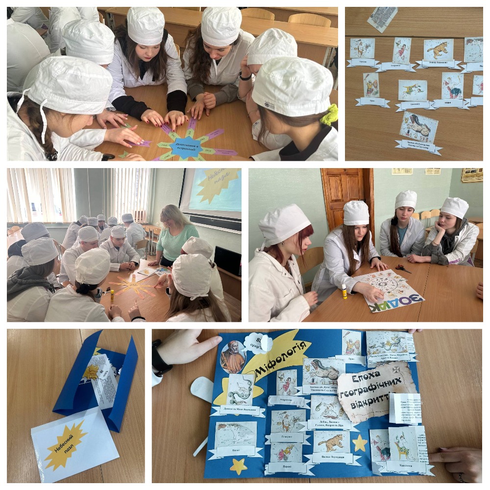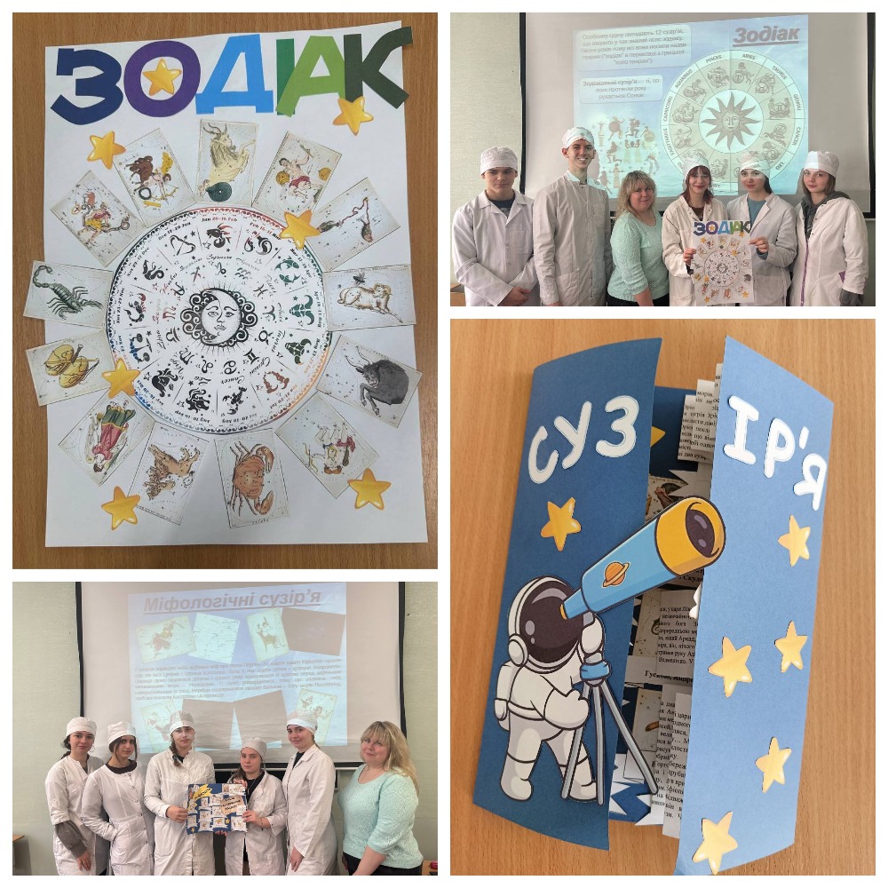 Студенти активно залучалися до обговорення, із захопленням досліджували історію походження сузір’їв та знаходили відповідності між астрономічними об’єктами і міфологічними персонажами, виконували практичні завдання та працювали у групах. Особливу зацікавленість викликала робота з лепбуком.