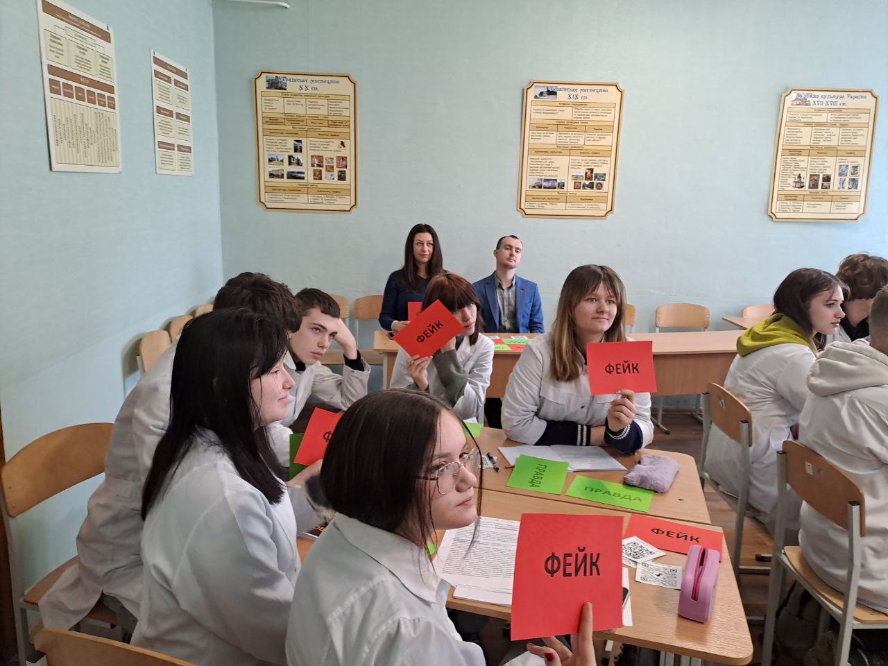 Здобувачі освіти були ознайомлені з інтерактивною платформою для самоосвіти і поліпшення своїх медіа-навичок «Медіадрайвер» та опрацювали блок, присвячений фейковій інформації, розв’язали поставлені у ньому завдання на обробку та аналіз інформації.