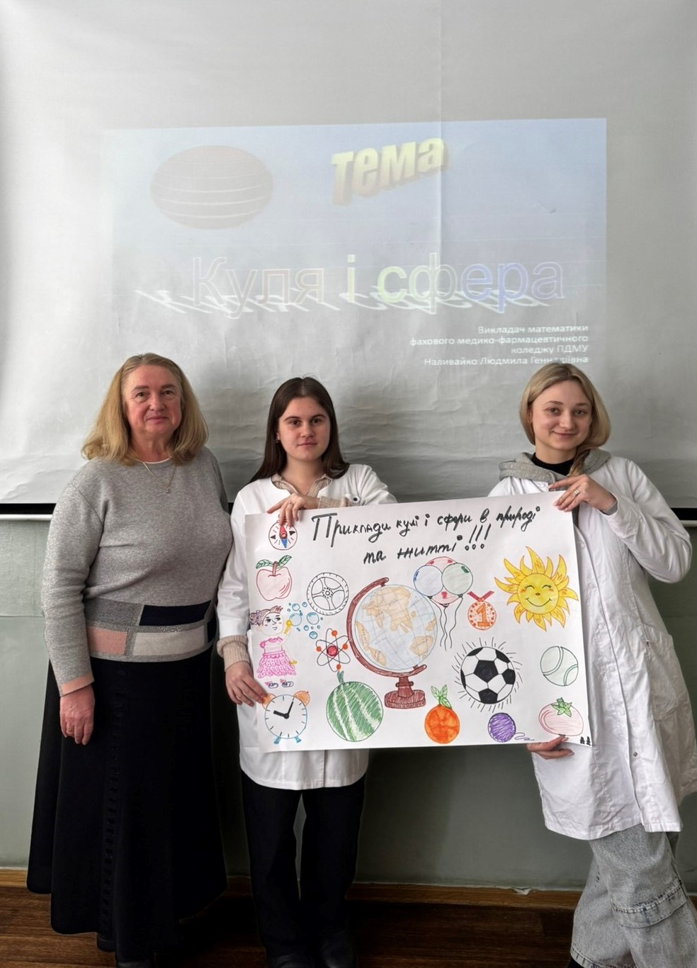 17 лютого 2025 р. викладач математики Людмила Наливайко провела відкрите практичне заняття з дисципліни «Математика» на тему «Куля і сфера» для студентів другого курсу ОПП "Стоматологія ортопедична".